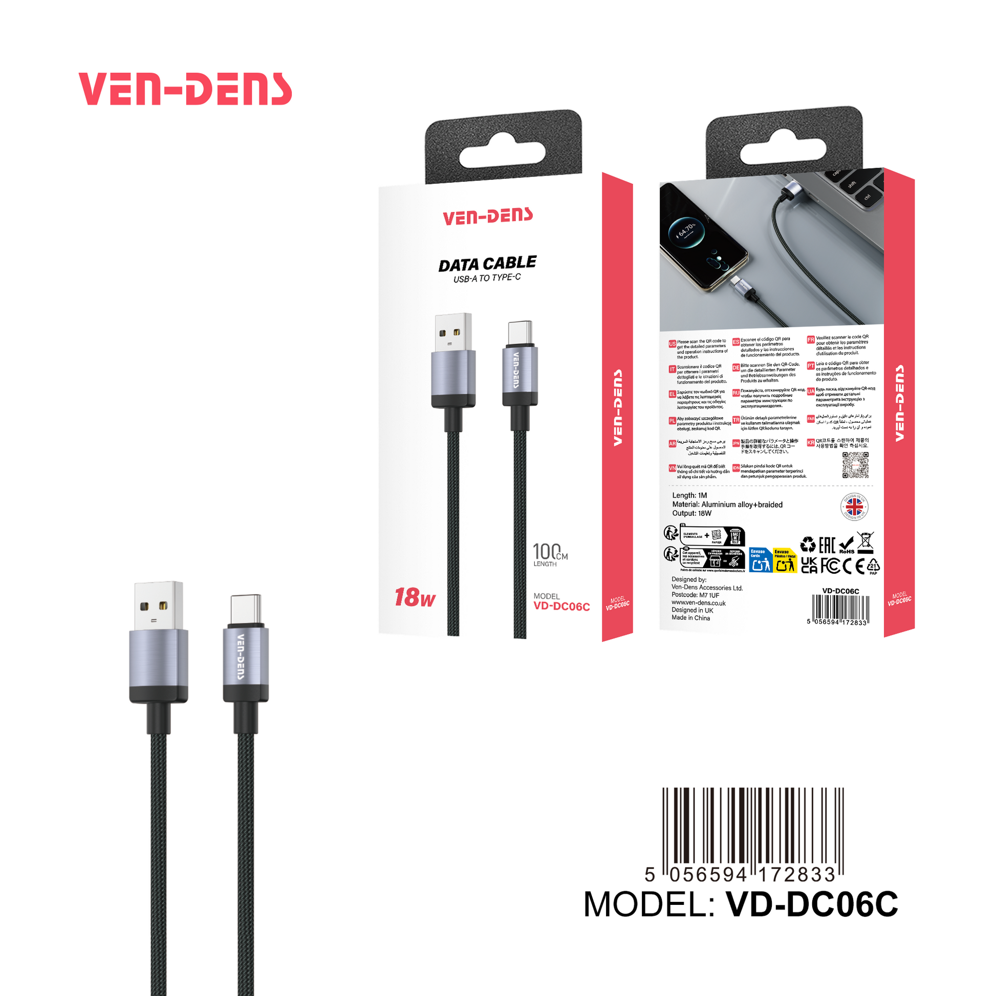 The 18W TYPE-A to TYPE-C cable features a durable construction with 48 braided fibers and an aluminum alloy shell. Engineered for both rapid charging and reliable data transfer, this high-quality cable ensures longevity and performance for your devices.