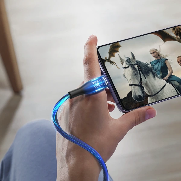 The cable features a durable nylon braided design equipped with a digital display. The Model VD-DCJ04 includes enhanced durability with anti-breakage cotton (5C version). Designed with advanced technology, delivers a superior charging experience, reducing wait times and keeping your device powered quickly and efficiently.